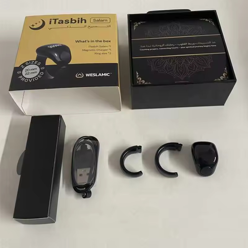 Weslamic Smart Tasbeeh Zikr Ring – Digital Tally Counter for Islamic Praise & Prayer | Waterproof, Magnetic Charging, and Convenient Reminder